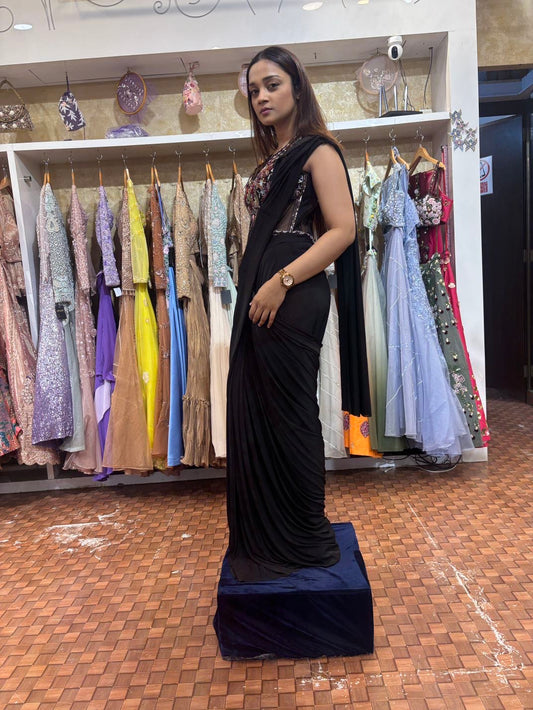 Sky Blue Indo western Lehenga Saree With Handwork Blouse.