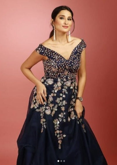 Midnight Blue Gown In Glass Organza