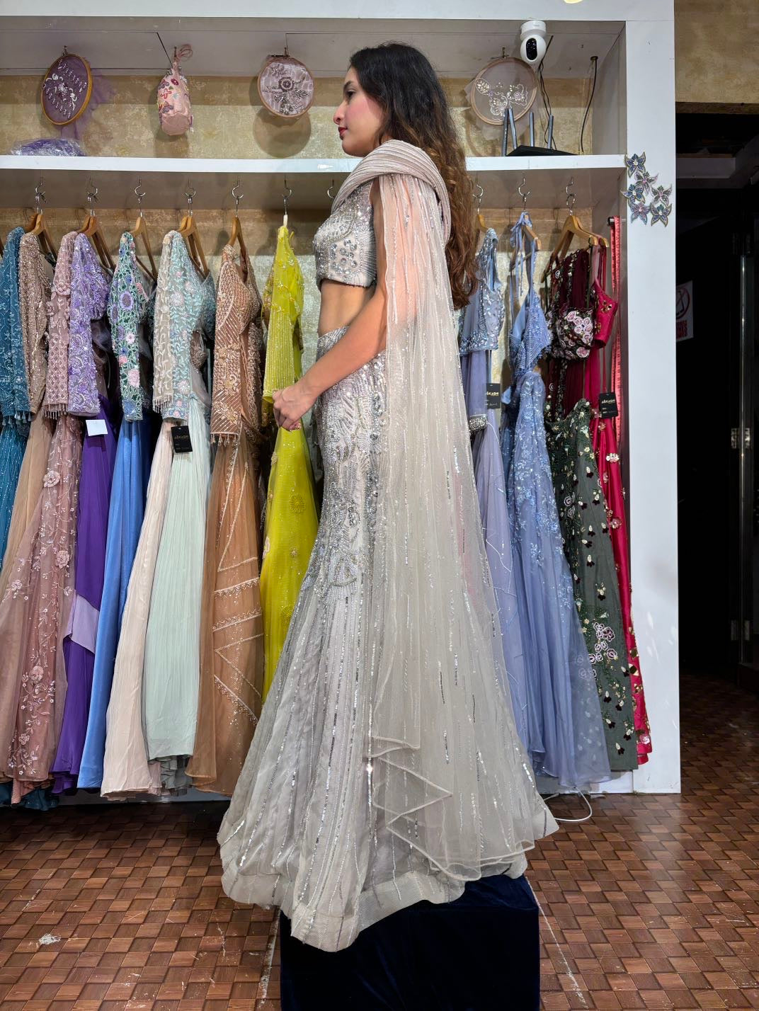 Grey silver fish cut Lehenga